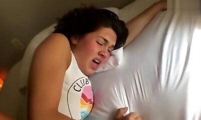 拉丁裔跨性别的家伙乱搞自己与一个假阳具,直到使他的FTM猫喷
