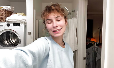 Hot She-creature wanking in public shower